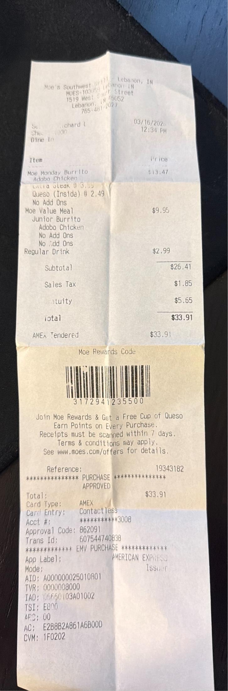 | #85 | 2026-03-16 | Moe's Southwest Grill | $33.91 R | 2026.03_Expenses_01 | 19343182 | Food & Dining | ✓ Reviewed | ||